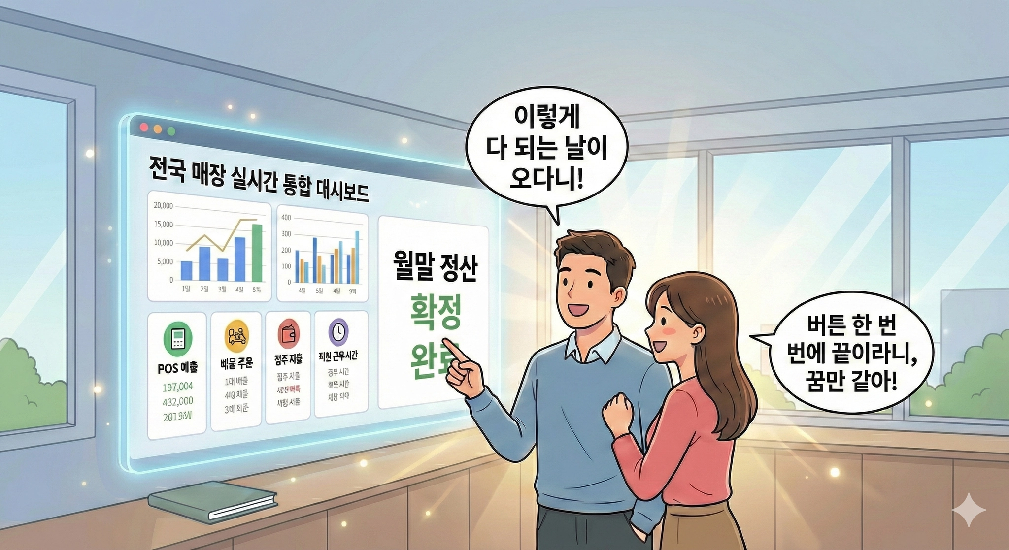 아침 출근과 동시에 대시보드를 켜면, 전국 모든 매장의 어제 손익이 이미 계산되어 있습니다.