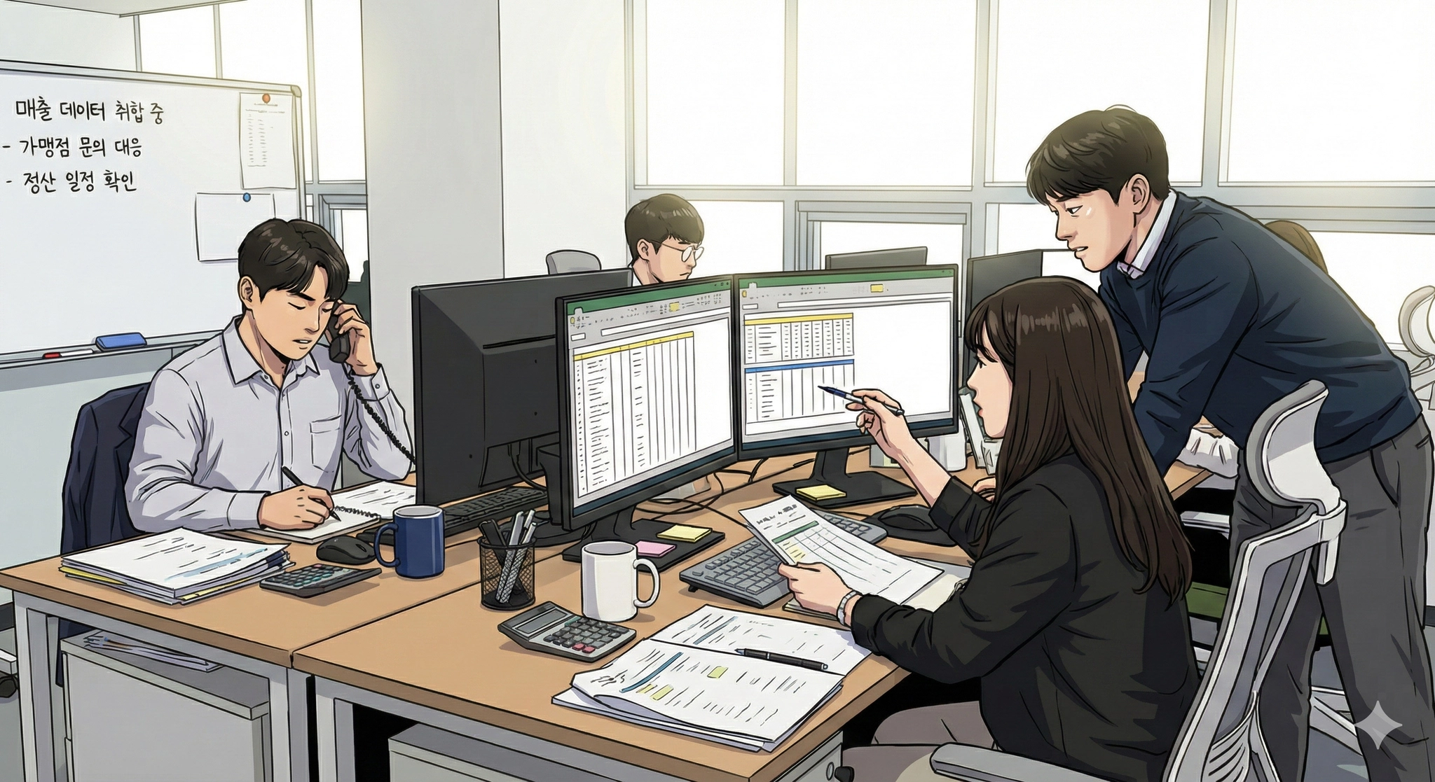 "솔직히 말씀드리면, 저희 업무 시간의 대부분은 회계나 재무 분석이 아니라 수작업 데이터 정리에 쓰이고 있습니다. 엑셀 취합하고, 점주님들께 확인 요청하고, 누락된 데이터 찾아서 다시 입력하고...”