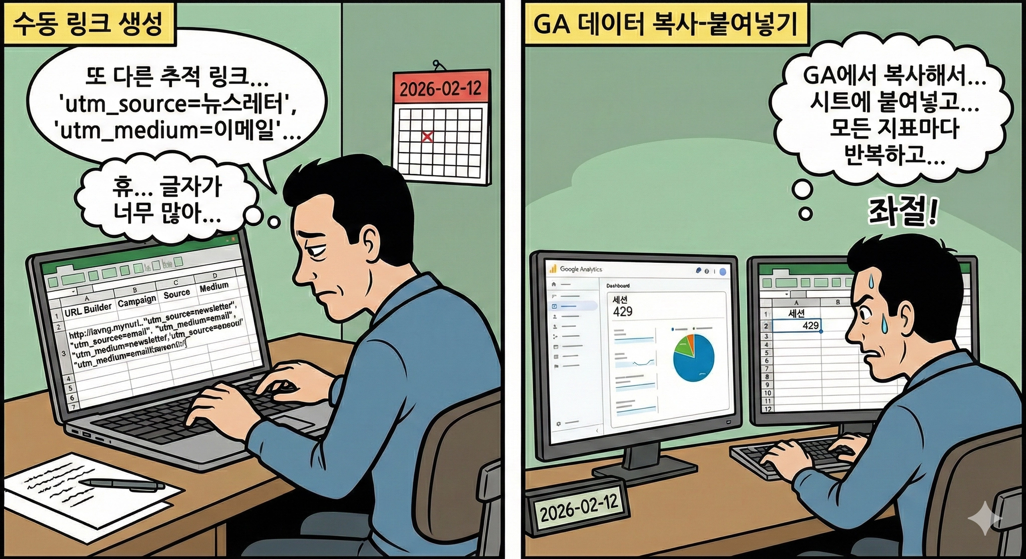 여러분도 이런 경험 있으시죠? 콘텐츠 하나 올리고 나면 "이게 효과가 있었나?" 궁금해서 GA 들어가고,