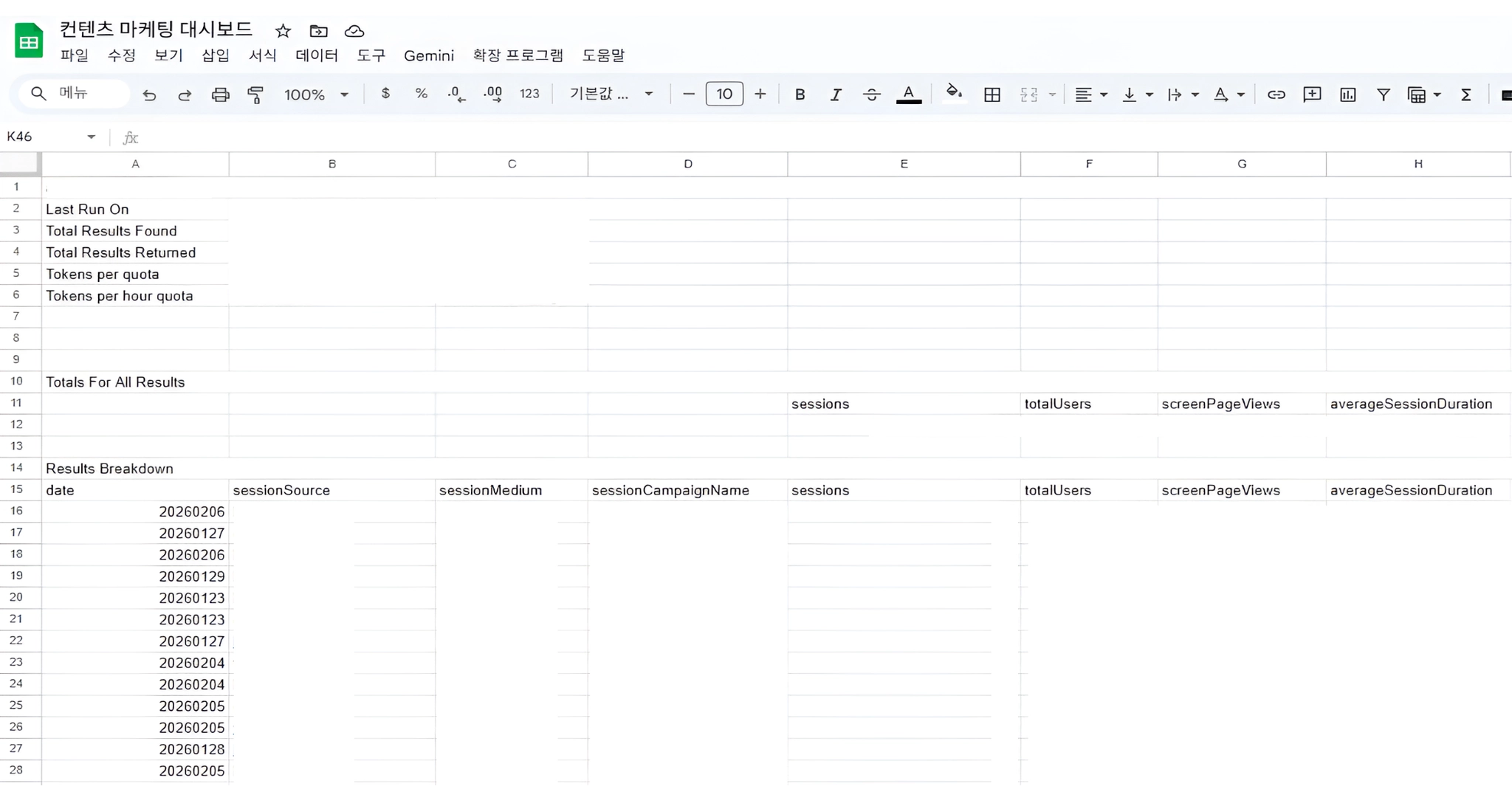 조금 아쉽지만, 그래도 GA 데이터가 자동으로 들어오니 작업 시간이 절반 이상 줄었어요.