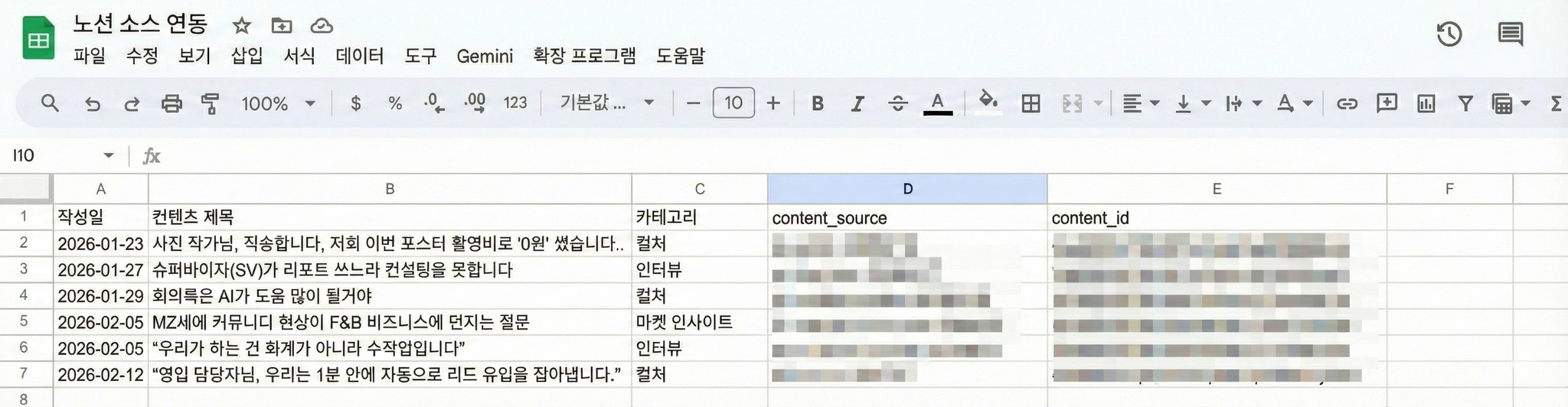 그래서 저희는 노션을 중심으로 한 콘텐츠 관리 자동화 파이프라인을 설계했어요.